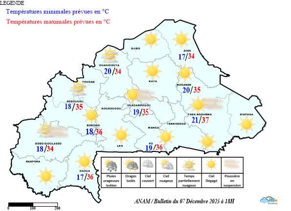 - L’ensemble du territoire connaitra l’influence de l’harmattan. Le ciel sera en général dégagé à peu nuageux.