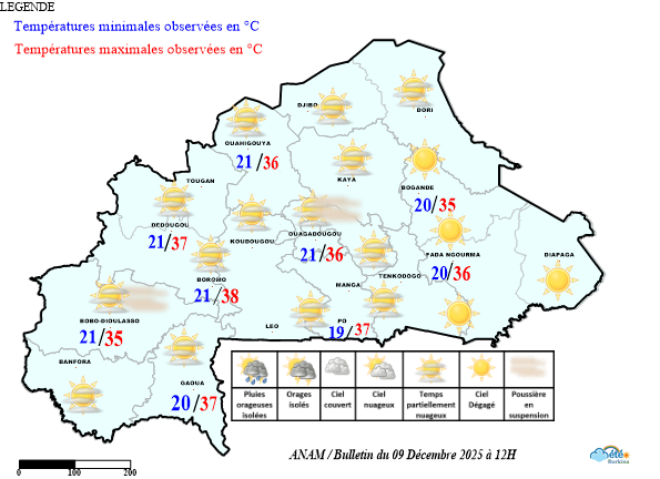 - L’harmattan a soufflé sur le territoire avec un ciel en général partiellement nuageux.
