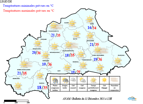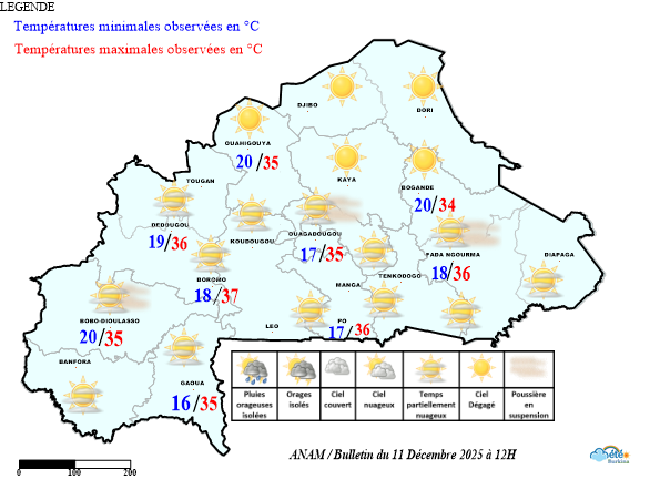 - L’ensemble du pays a été sous l’influence de l’harmattan avec un ciel en général dégagé à peu nuageux.