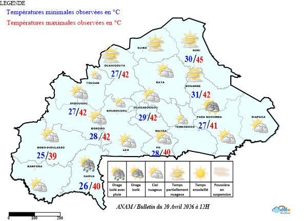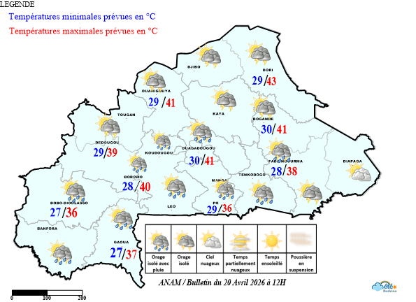 - Le ciel a été en général nuageux à très nuageux avec des orages et pluies isolés observés sur certaines localités du Djôrô et du Goulmou.