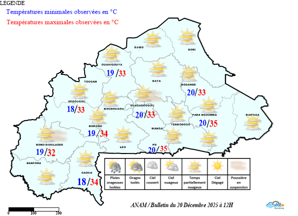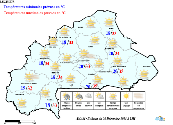 - L’ensemble du pays a été sous l’influence de l’harmattan sous un ciel en général partiellement nuageux.