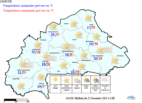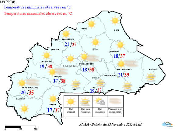 - L’ensemble du pays a connu l’influence de l’harmattan sous un ciel en général dégagé.