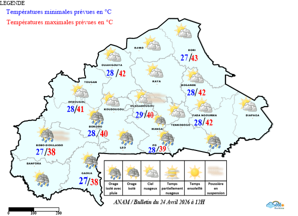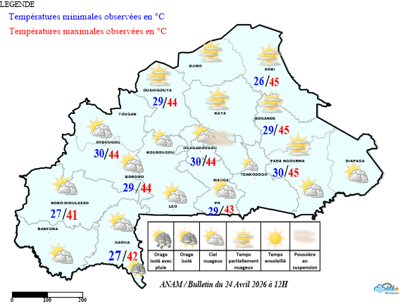 - Au cours des dernières 24 heures, les vents humides de mousson ont intéressé la moitié sud du territoire, tandis que le reste du pays a été sous la prédominance des vents d’harmattan.