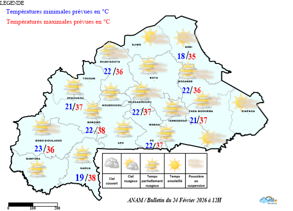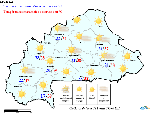 - Le territoire a été sous l’influence d’harmattan faibles à modérés, avec un ciel en général dégagé.